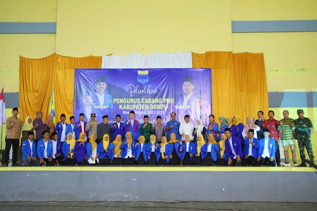 DOMPU, PERSINDONEWS.COM – Pergerakan Mahasiswa Islam Indonesia (PMII) sudah banyak membentuk alumni yang berhasil menjadi orang heat baik di pemerintahan maupun di sektor swasta. “Hendaknya nama besar pendahulunya, dapat menginspirasi para kader PMII yang dilantik untuk berkiprah bagi kemajuan daerah, bangsa dan negara,” ungkap Bupati Dompu H. Kader Jaelani memberikan sambutan via online zoom meeting pada pelantikan pengurus PMII Cabang Kabupaten Dompu masa khidmat 2022-2023, yang bertempat di Paruga Samakai Selasa 14/03/2023.
