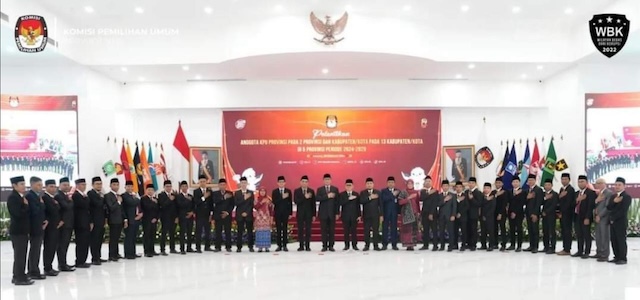 JAKARTA, PersIndoNews.com – Komisioner terpilih Komisi Pemilihan Umum (KPU) Kabupaten Dompu periode 2024-2029 masing-masing, Arif Rahman Sh, Maman Apriyansyah S.Pd, Yusuf S.H.I, Nasarudin S.Pd, dan Hidayatullah SE, secara resmi dilantik oleh Ketua Komisi Pemilihan Umum Republik Indonesia (KPU RI), Hasyim Asyari, Selasa (20/2/2024). Mereka dilantik bersamaan dengan Komisioner dari 7 Kabupaten dan Kota di Provinsi Nusa Tenggara Barat (NTB).